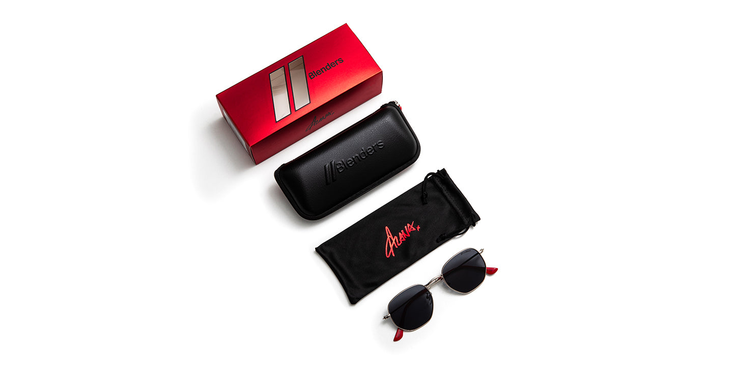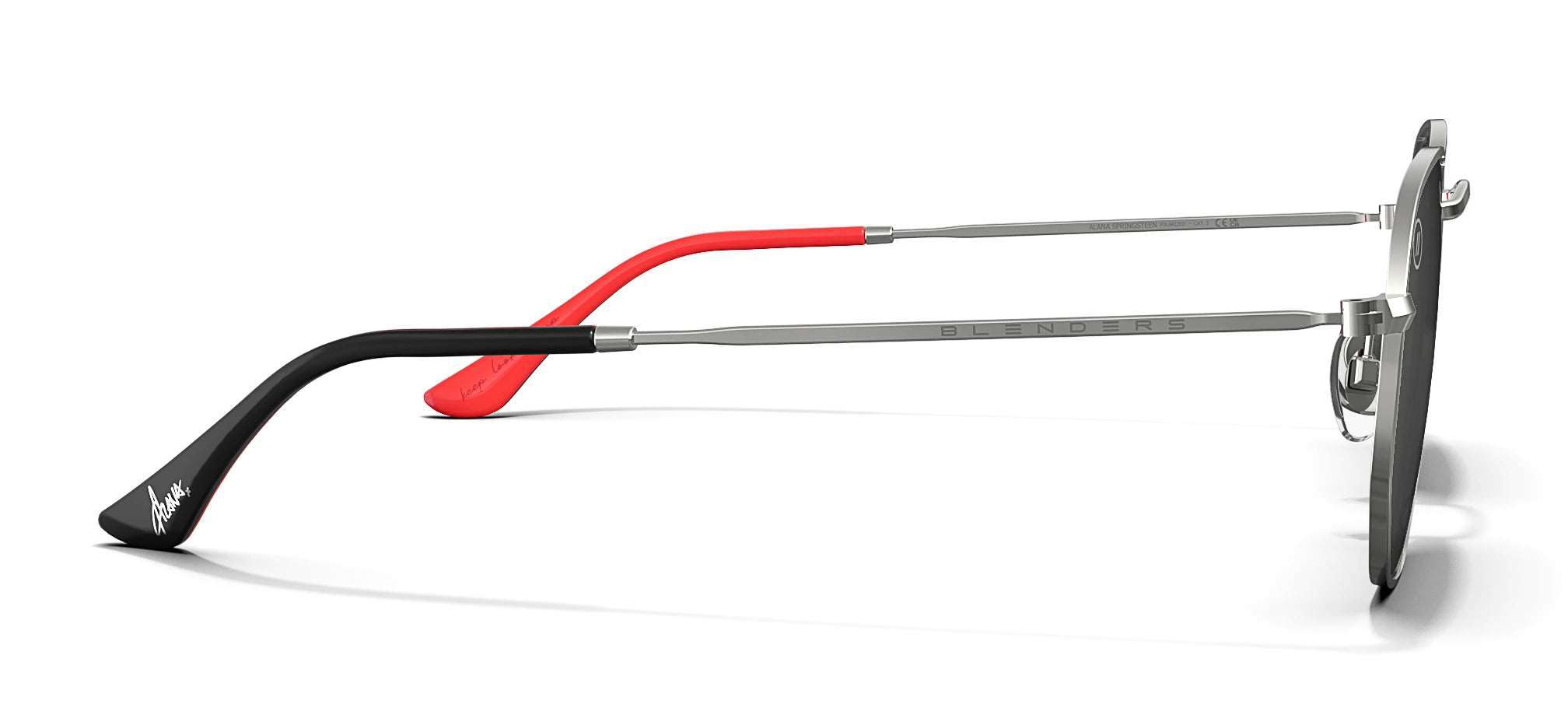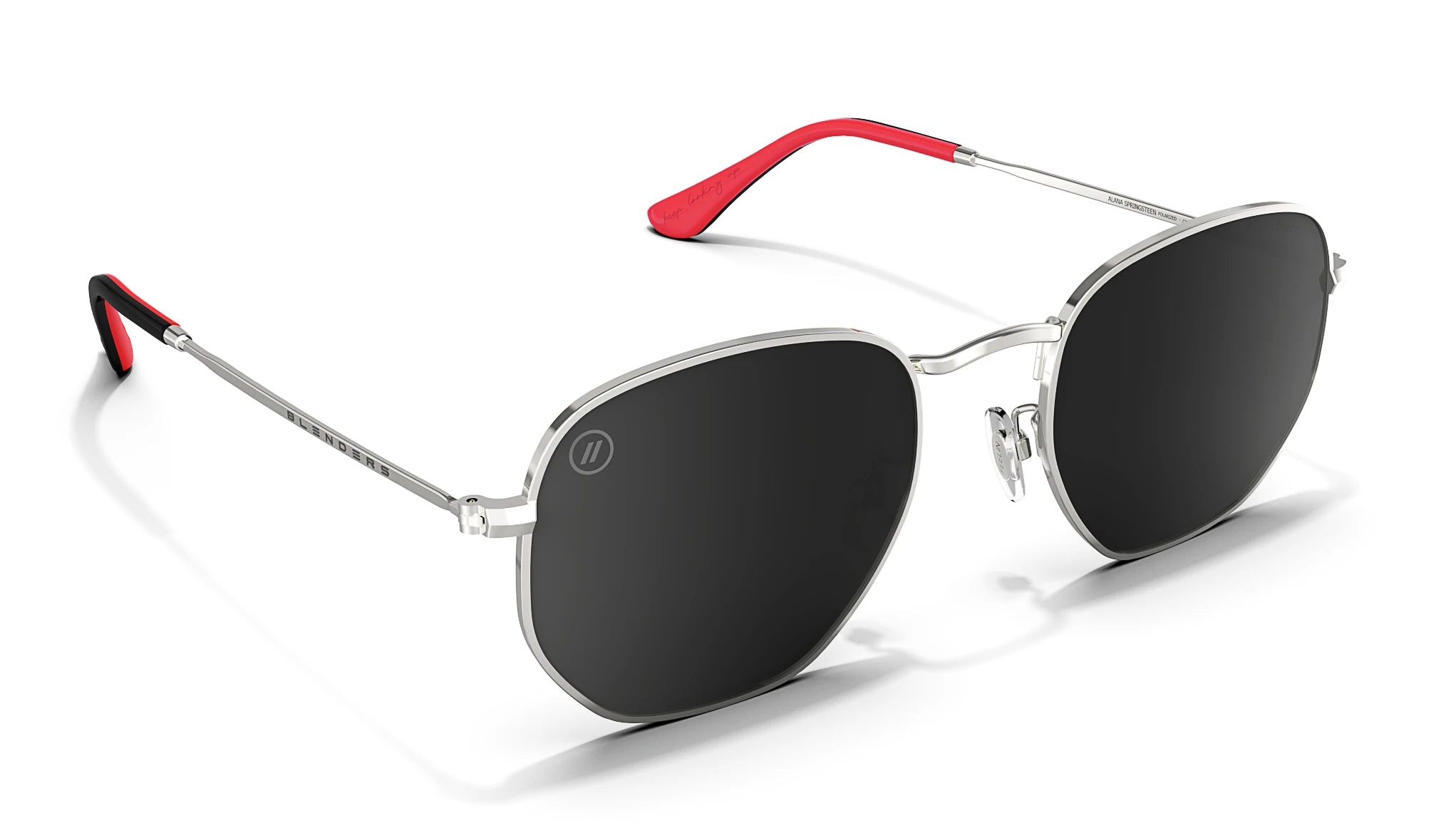 Built on Alana Springsteen’s go-to silhouette, this limited-edition Hexagram is a fearless fusion of music, meaning, and identity. The 757 laser-etched on the bridge reps her Virginia roots, while the black-and-red split is pure Alana: bold, high-contrast, and unapologetic. Finished with a Heart on Fire icon and her granddad’s mantra, “Keep Looking Up,” this design is more than eyewear – it’s a bold story and an even bolder statement.