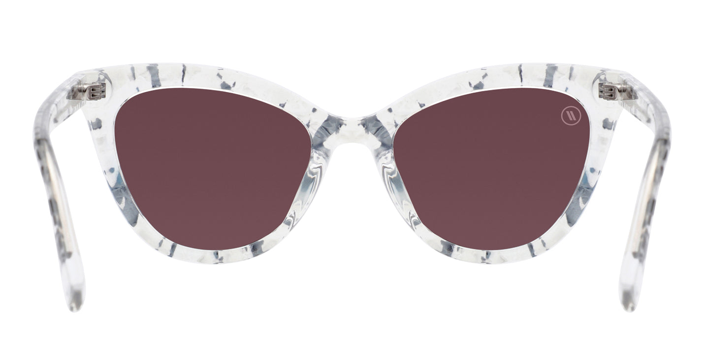 ‘Atlantic Chill’ is the epitome of “free expression.” There’s no holding back here, with a crystal clear frame in high gloss that’s enlivened by a sensational mother of pearl print ranging across the frame and temples. The glitz and glamour is polished off by icy blue polarized lenses and silver foil Life in Forward Motion stripes for dramatic effect. There’s nothing subtle about the splash these sunnies make. //