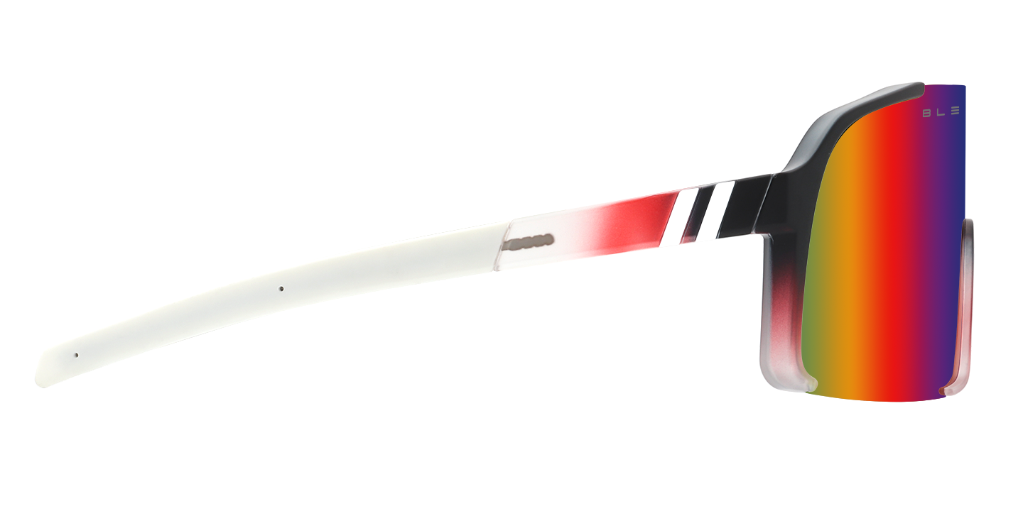 Get up and move with ‘Dance Kingdom.’ Part of our sports-centric ‘Exposé’ collection, we’ve gone all out so you can go all out. These wraparound sunglasses boast a frame that fades from solid black to crystal red to crystal clear. A matching PureBlend rainbow lens provides peak performance and miles of style. //