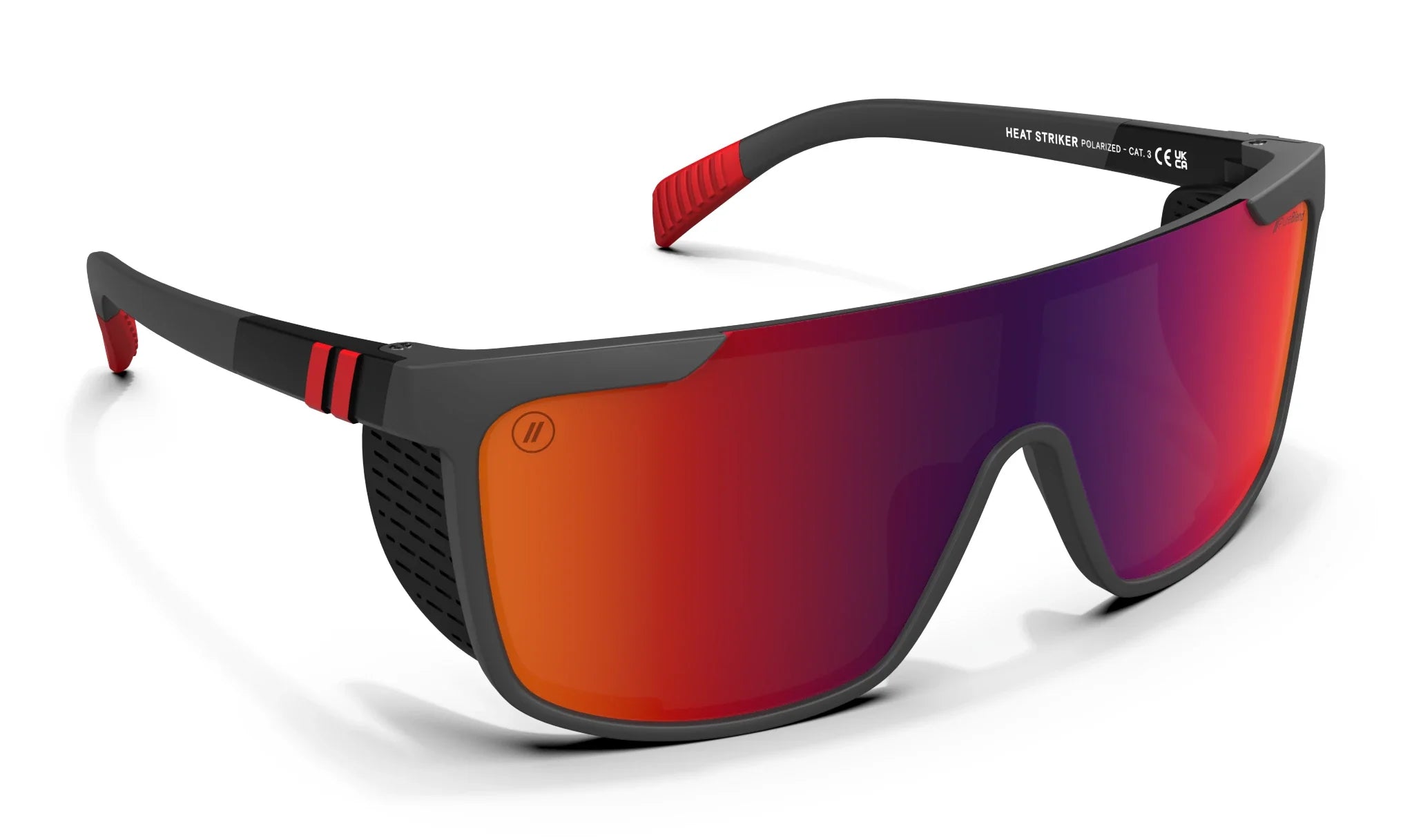 Get out there and get after it with the progressive style of ‘Heat Striker,’ part of our ‘Active SciFi’ collection. These sunglasses smartly feature attachable side shields, letting you choose how you tackle the day. Rubberized nose pads and temple tips enhance fit and feel, and the gunmetal-colored frame is strikingly contrasted by a crimson PureBlend Lens. //