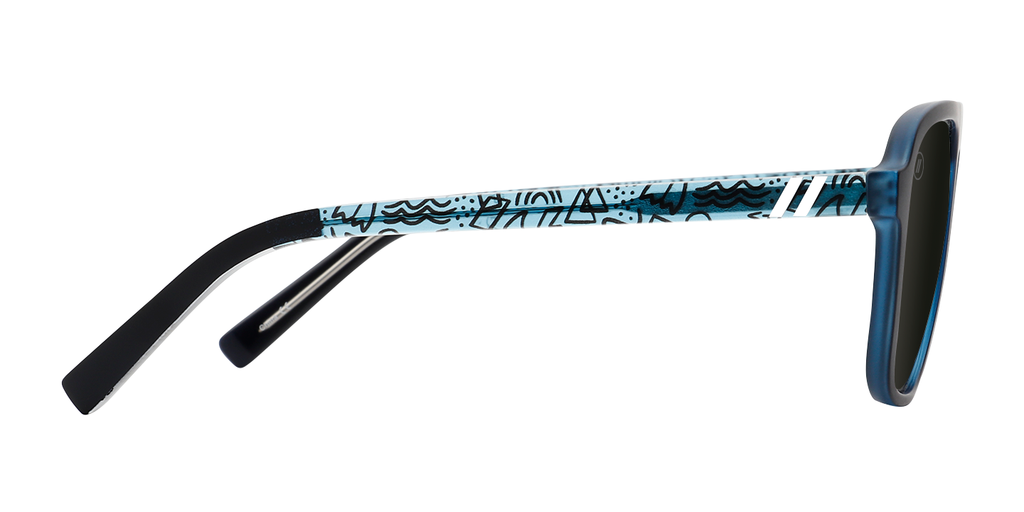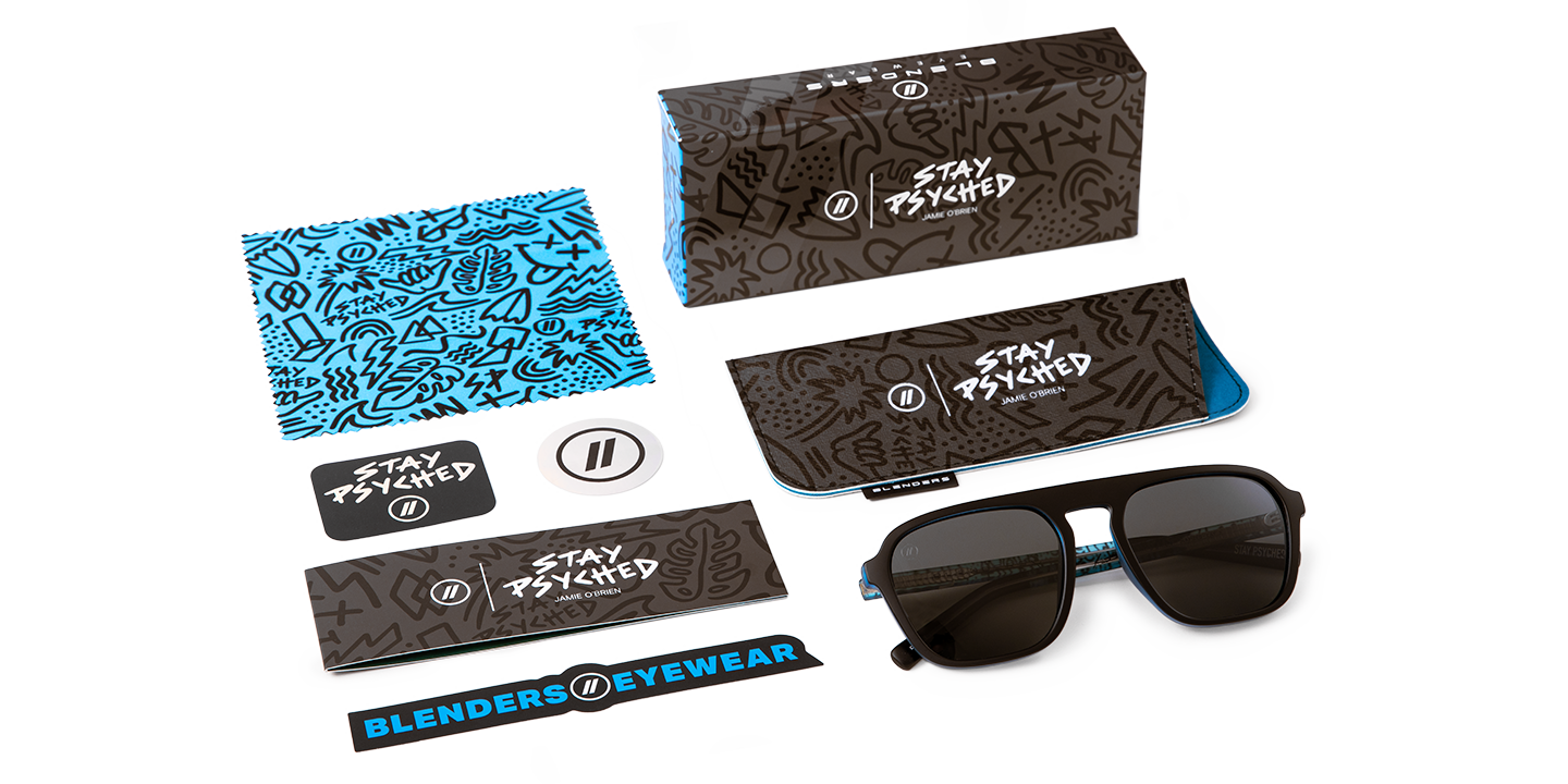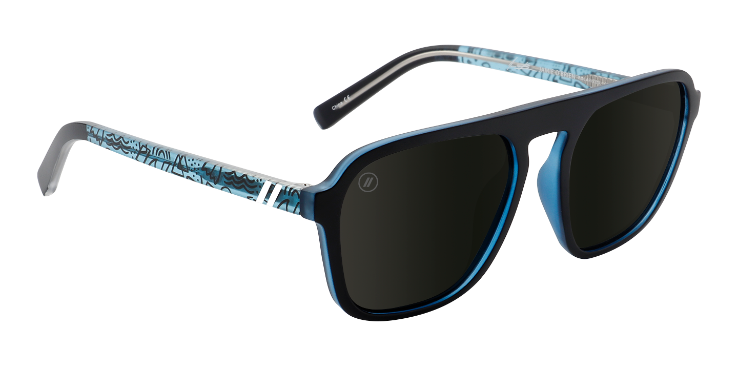 Colorful. Original. Gnarly. Free surfer and YouTube legend, Jamie O’Brien, is all of these things-it’s only fitting his ‘Stay Psyched’ Signature Series sunglasses follow suit. These bad boys are a force of nature thanks to a matte black frame, crystal blue interior, and your choice of a smoke or blue polarized lens. And for an extra splash of style, we’ve applied a custom temple pattern that’s as fun and fresh as JOB himself. //