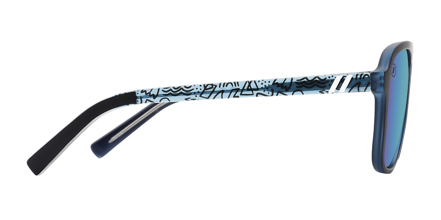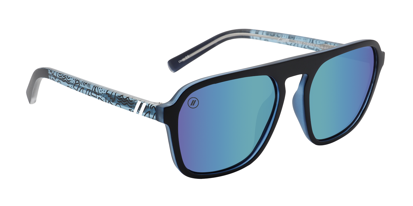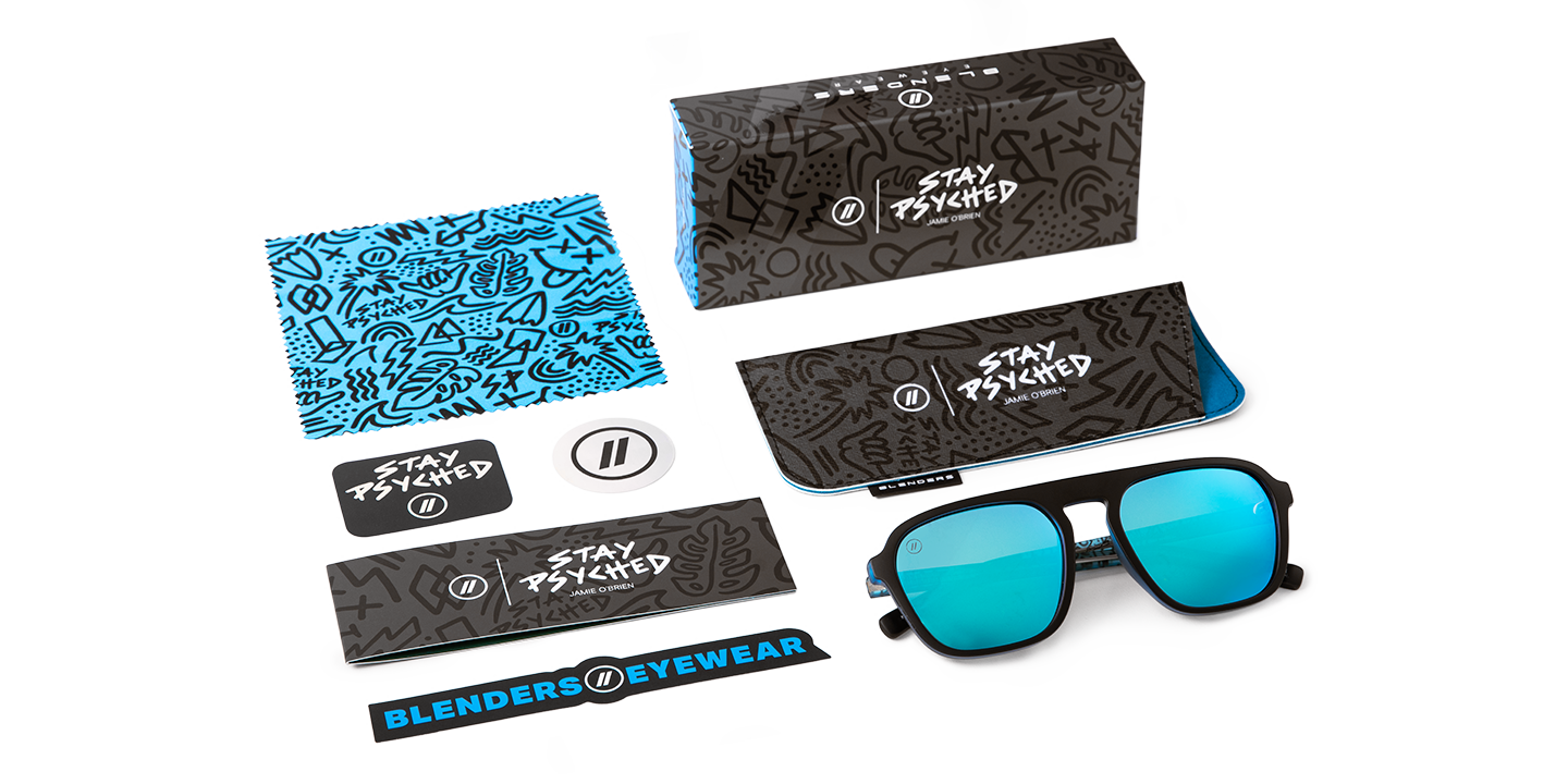 Colorful. Original. Gnarly. Free surfer and YouTube legend, Jamie O’Brien, is all of these things-it’s only fitting his ‘Stay Psyched’ Signature Series sunglasses follow suit. These bad boys are a force of nature thanks to a matte black frame, crystal blue interior, and your choice of a smoke or blue polarized lens. And for an extra splash of style, we’ve applied a custom temple pattern that’s as fun and fresh as JOB himself. //