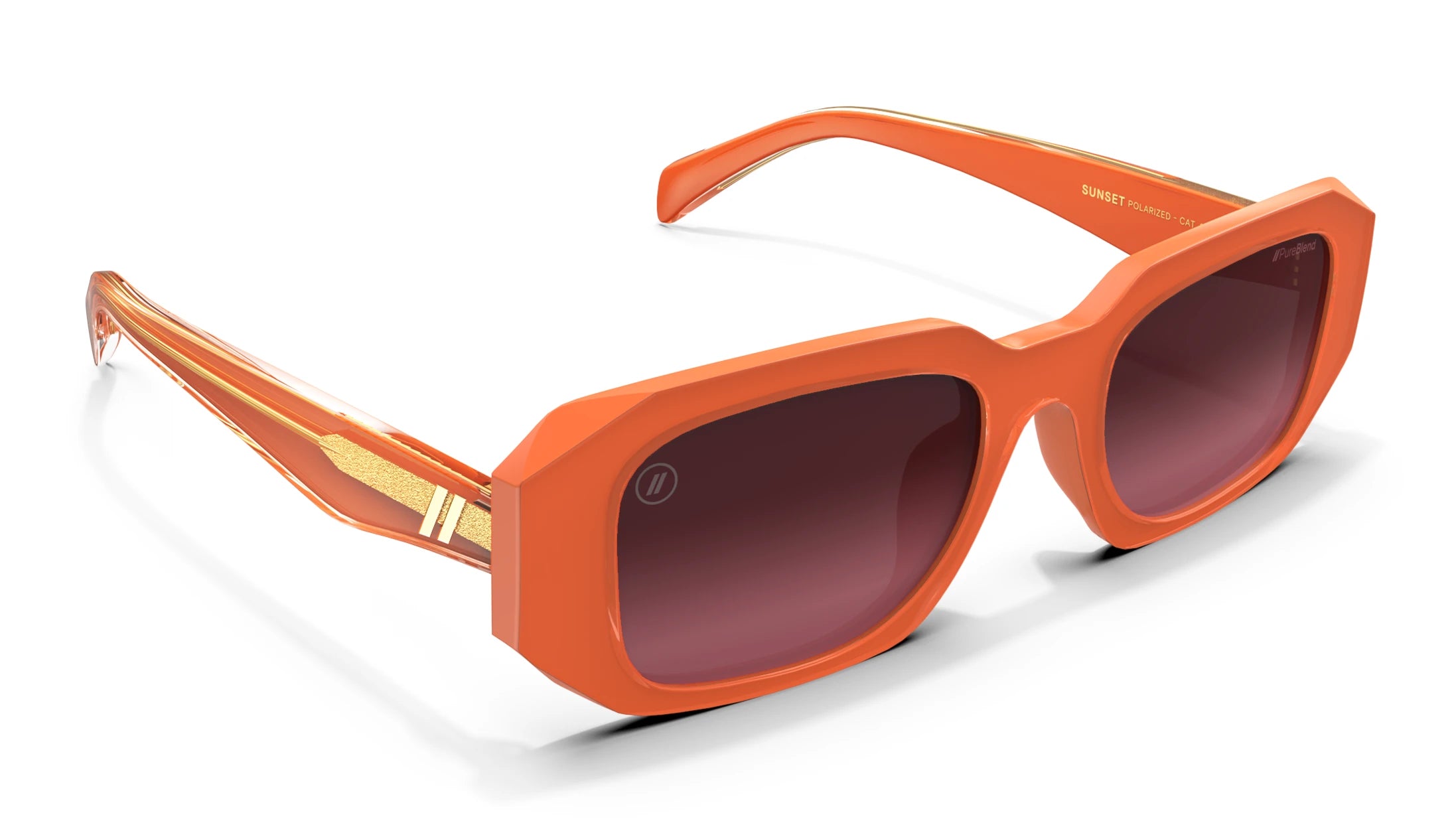 The ‘Onyx Sunset’ is all about vibrant energy, featuring a bold orange frame paired with gradient polarized lenses for a striking, sun-soaked aesthetic. Designed to turn heads, these shades bring a confident, statement-making look.