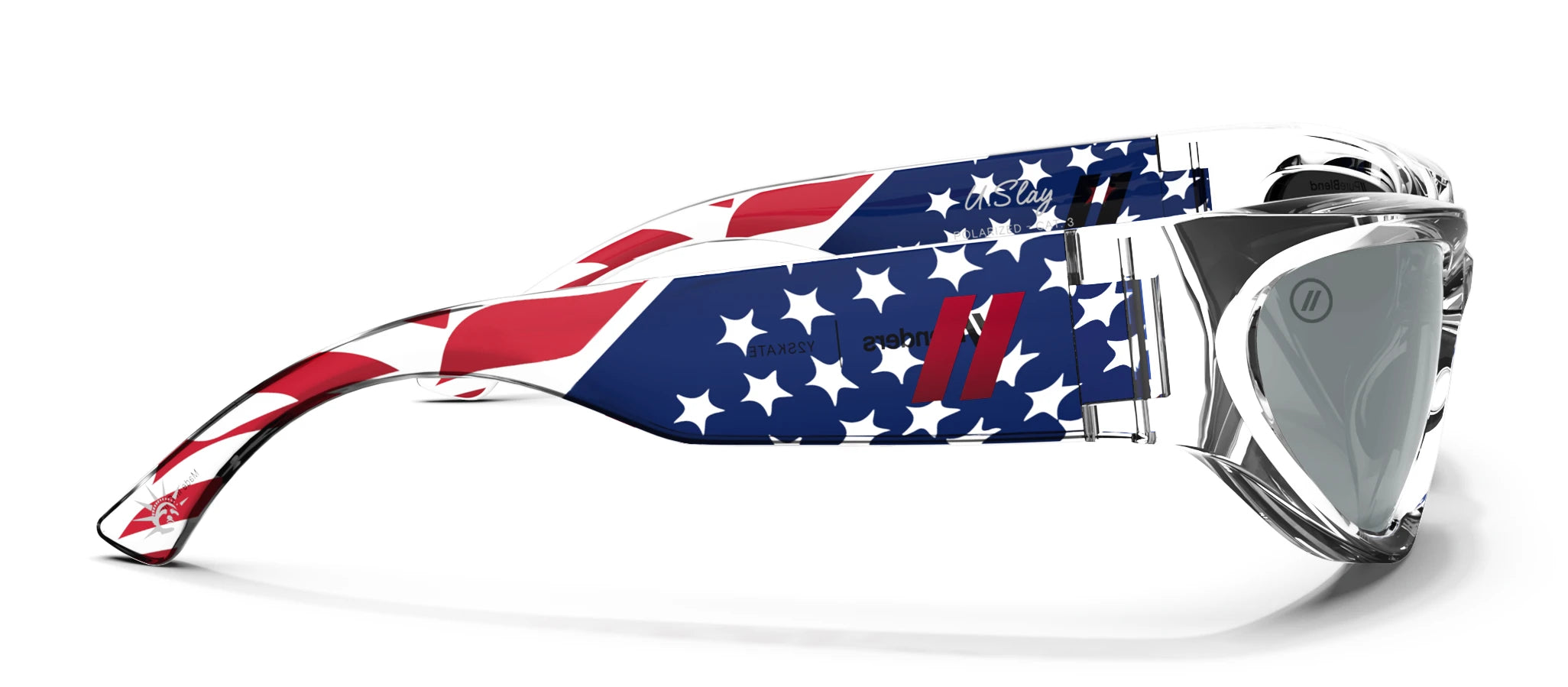 Meet U.Slay, the summer standout that blends Y2K nostalgia with fresh 2025 flair. Made to turn heads, these limited-edition shades are all about making moves-your way. Designed with Polarized PureBlend lenses for next-level clarity and scratch resistance, U.Slay is packed with personality. From the subtle flag print on the inside to the Lady Liberty icon at the temple tips, every detail is a nod to confidence, pride, and personal style.